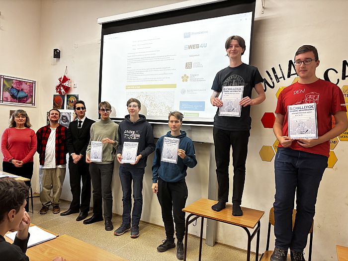 - Nejlepších pět z celostátního pořadí z nematuritních ročníků bude osloveno Matematicko-fyzikální fakultou Univerzity Karlovy s nabídkou bezplatné účasti na jejich jarním týdenním informatickém soustředění pro středoškoláky.