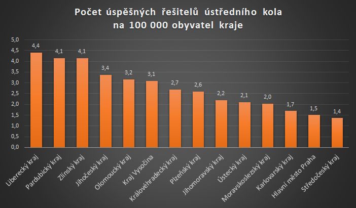 Potřetí vyhlašujeme tzv. Bobří informatický kraj. Je to kraj, který má nejvíce úspěšných řešitelů ústředního kola soutěže na 100 000 obyvatel.