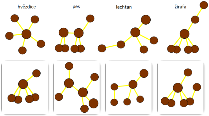 V naší úloze u kaštanových zvířátek nebereme v úvahu jejich velikost nebo srst. Uvažujeme pouze strukturou jejich těl, všechno ostatní není důležité (říkáme, že abstrahujeme). Struktura zvířátek se zachovává, i když klidně stojí nebo třeba divoce tancují.